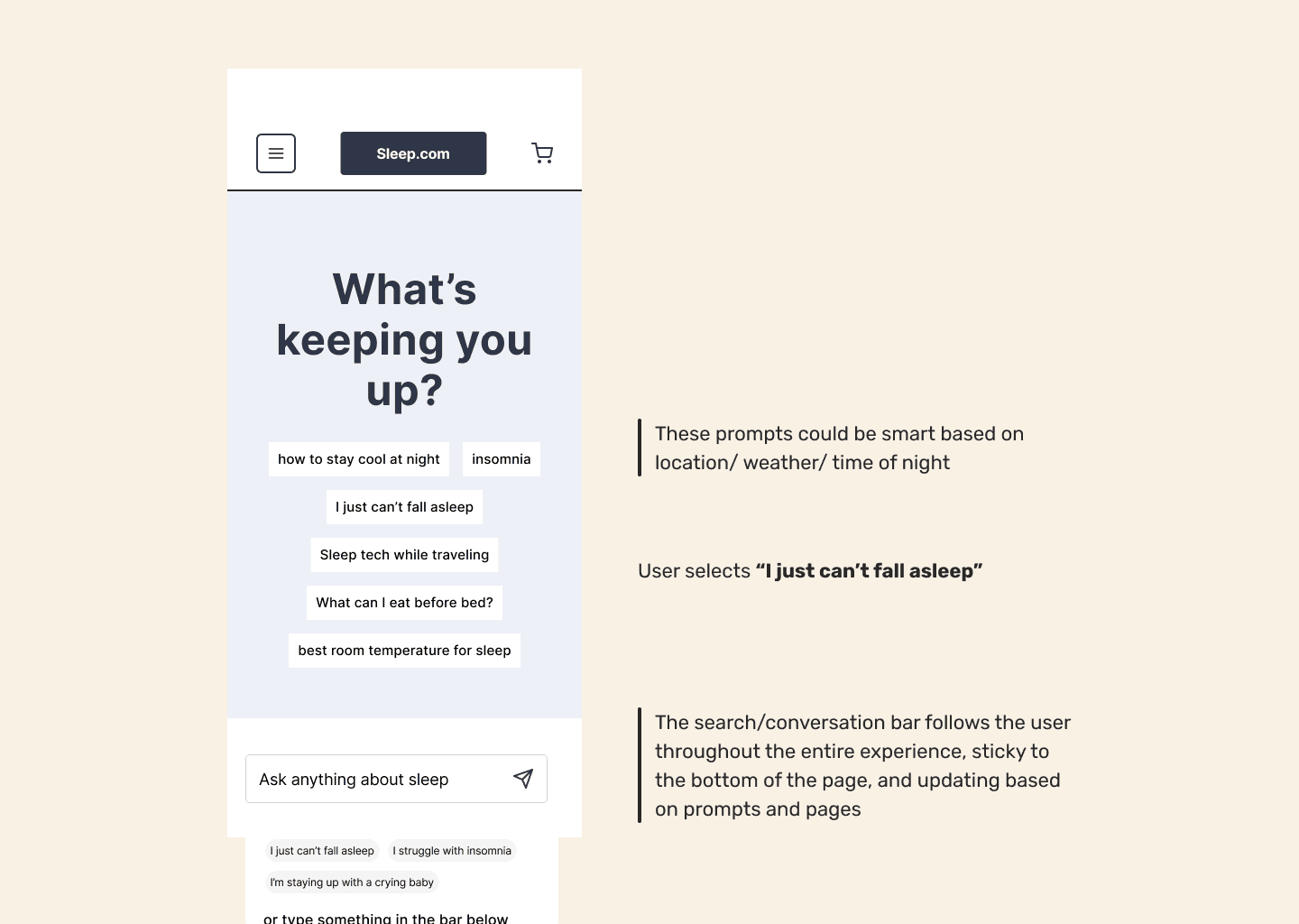 1 in 3 adults say they are sleep deprived. We explored the potential of using AI to help direct and help customers to resources and products to get better sleep.